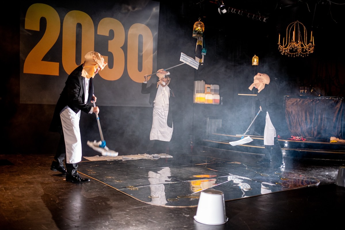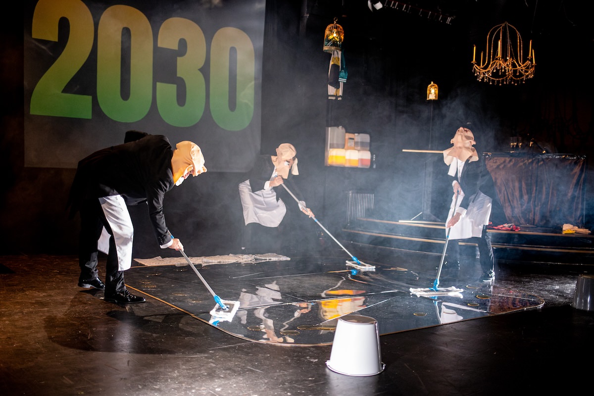 Wir schreiben das Jahr 2030. Die Party ist vorbei. In den Resten einer großen Feierlichkeit treffen wir auf drei Gestalten, die den Weg des neuen politischen Wandels Revue passieren lassen.